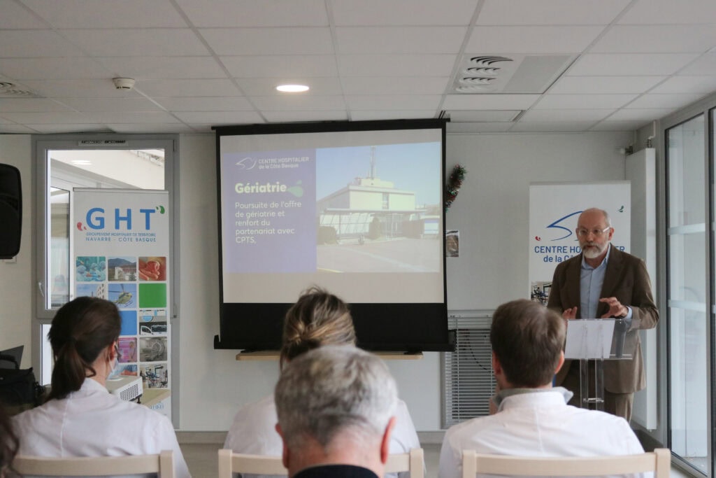 À l’occasion de la cérémonie des vœux qui s’est déroulée dans l’ensemble des établissements du GHT Navarre Côte Basque tout au long du mois de janvier, Frédéric Espenel a souhaité revenir sur les temps forts de l’année écoulée et partager les grandes orientations pour l’année à venir, dans un contexte à la fois exigeant et porteur de sens pour l’hôpital public.
