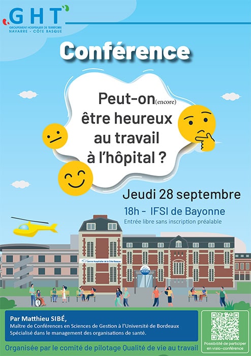 La Direction invite l’ensemble du personnel à participer à une conférence organisée à son intention sur le thème « Peut-on (encore) être heureux au travail à l’hôpital ? ».