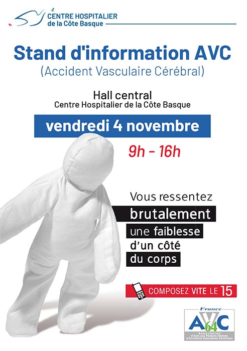 À l’occasion de la journée mondiale de prévention de l’Accident Vasculaire Cérébral le service de neurologie et l’association France AVC64 se mobilisent comme chaque année pour organiser une journée de prévention de cette pathologie.