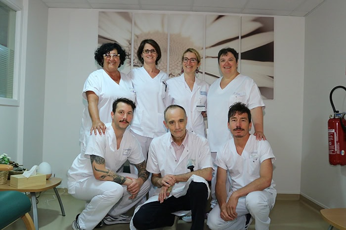 L’équipe est composée d’un médecin et d’un cadre référents, de 4 infirmier(e)s partagé(e)s avec la Chambre Mortuaire, de 2 cadres infirmières participant au tour de garde…et à la vie institutionnelle de l’unité.