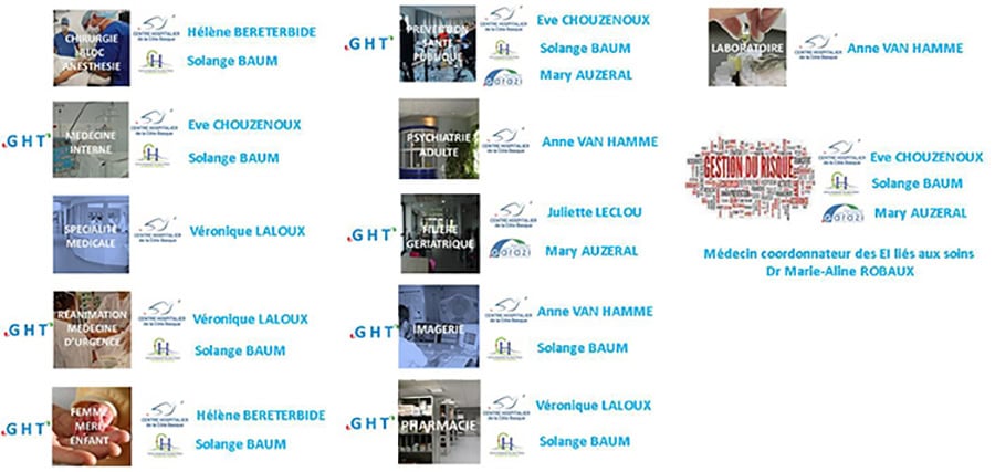 Pour répondre à la territorialité des parcours et à la mise en place des pôles inter-établissements ainsi qu’au départ de Myriam Lange, une nouvelle affectation des qualiticiennes par pôle clinique ou médico–technique a été réalisée par la Direction Qualité et Gestion des Risques.