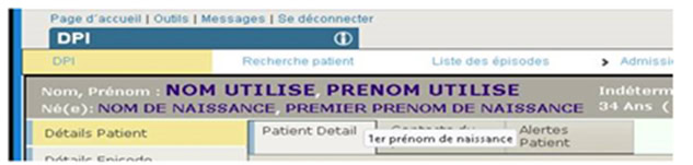 Afin de faciliter les échanges avec les patients, les bandeaux TrakCare comportent les deux types d’identité.