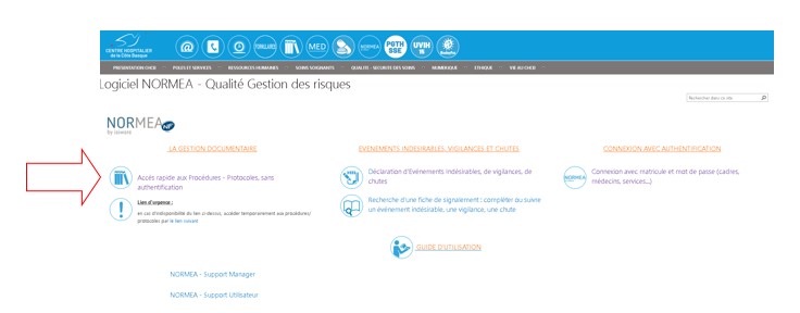 3. J’accède facilement aux procédures et documents qualité utilisés à mon activité : Dans le raccourci comme montré ci-dessus je passe par le portail documentaire pour consulter les documents, je peux mettre les documents en favori afin de les retrouver plus facilement. Je peux également y accède directement via intranet en cliquant sur NORMEA puis « accès rapide » (voir ci-dessous).