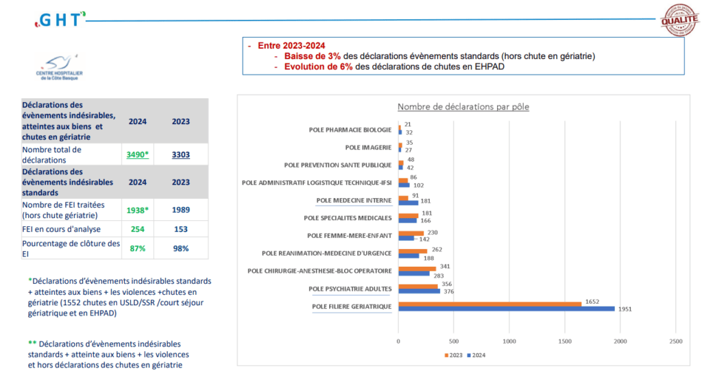 Le Bilan des évènements indésirables sur la période 2023-2024 a été présenté lors du CQSS du mardi 11 mars 2025.
