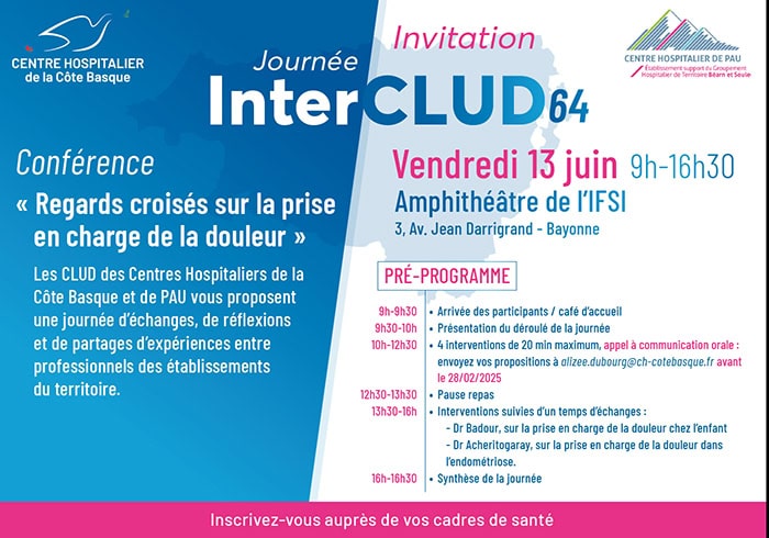 Nous vous rappelons, que le vendredi 13 juin 2025, le Centre Hospitalier de la Côte Basque accueillera cette année la journée Interclud 64 en partenariat avec le Centre Hospitalier de Pau.