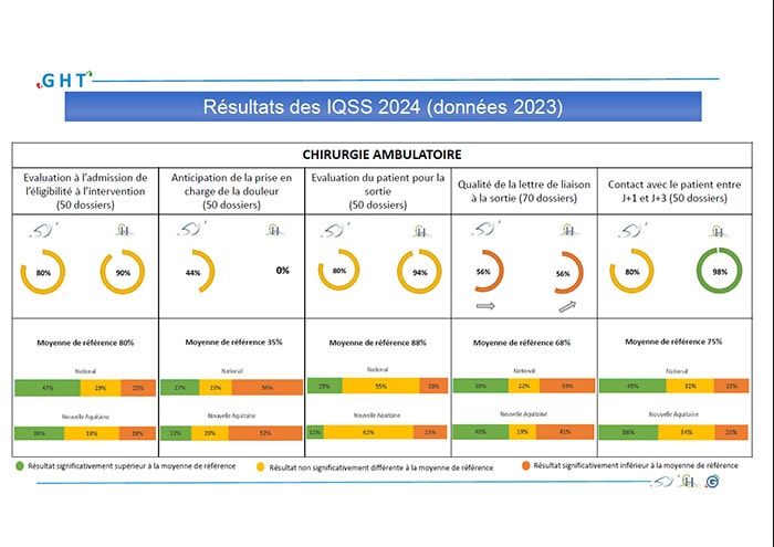 La campagne de recueil de l’indicateur qualité et sécurité des soins relatif à la Chirurgie Ambulatoire, SMR (gériatrique et neurologie), HAD ont été communiqués en CQSS du 5 Novembre 2024 par l’équipe Qualité et Sécurité des Soins.