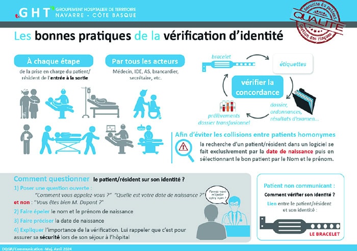 L’Identitovigilance est au cœur de notre démarche qualité pour ce mois de novembre, c’est l’occasion de vous rappeler les bonnes pratiques relatives à la vérification de l’identité du patient, synthétisées dans la plaquette ci-dessous :