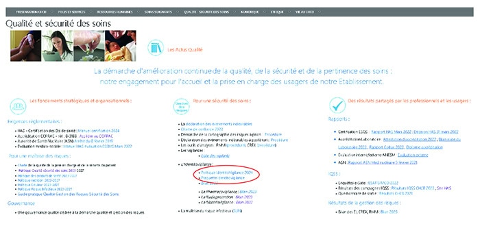 Par ailleurs, ce thème nous permet de vous faire part de la mise à jour de la Politique d’IdentitoVigilance 2024 de l’hôpital. Vous pouvez consulter le document complet sur l’intranet, dans l’onglet « Accueil Qualité – Sécurité des Soins ».
