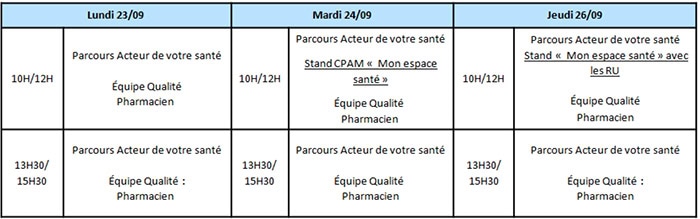 Un parcours, durant la « Semaine de la Sécurité des Patients » du 23 au 26 Septembre, a été organisé par l’équipe Qualité dans la rue couverte, sur le thème «Acteur de votre santé» et a comptabilisé :