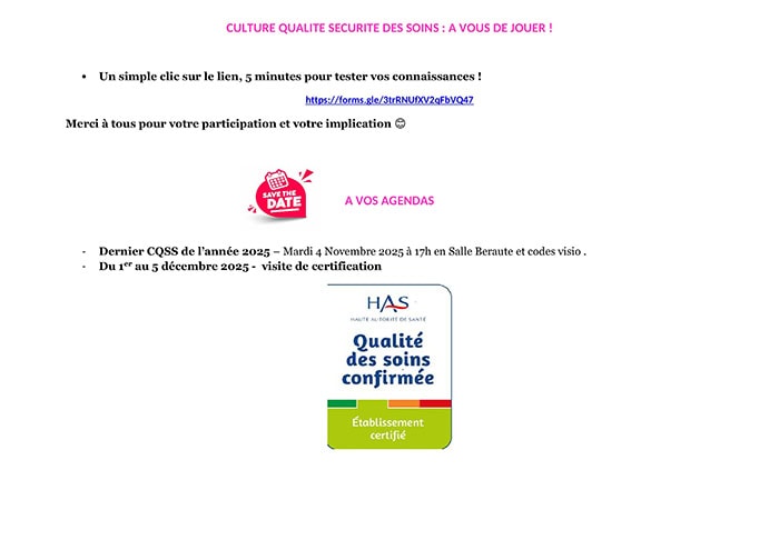 Les ACTUS Qualité et Sécurité des Soins octobre 2025