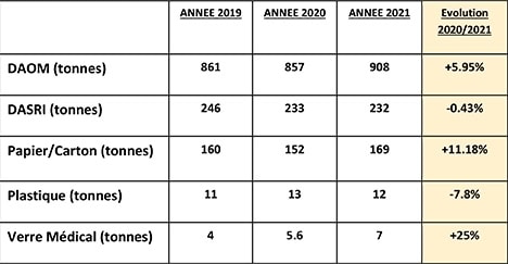 DD vous présente les tonnages de déchets générés au CHCB pour les principales filières de tri en 2021.
