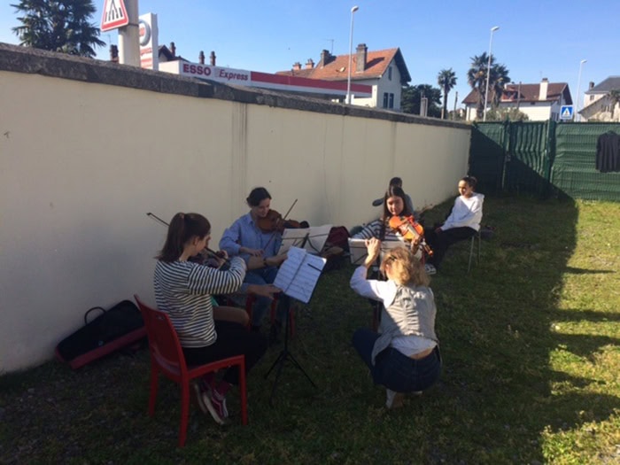 Ce partenariat devrait se développer prochainement permettant aux patients et soignants du site Saint Léon mais aussi d’autres sites du Centre Hospitalier de la Côte Basque de bénéficier de ces prestations musicales avec des violoncellles et violons mais aussi avec d’autres pupitres d’instruments.