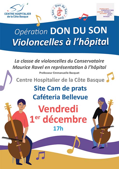 A l’initiative d’Etxola les jeunes musiciens du conservatoire et leurs professeurs proposeront une prestation pour les patients et soignants des services de psychiatrie adulte intéressés dans la cafétéria du bâtiment Bellevue.