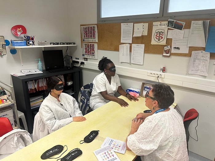 Il s’agit d’actions de sensibilisation aux handicaps au travail proposées dans les services via des ateliers sous forme de jeux ludiques et conviviaux pour aborder le handicap, qu’il soit visuel, auditif, psychique, mental, moteur ou lié à une maladie invalidante.