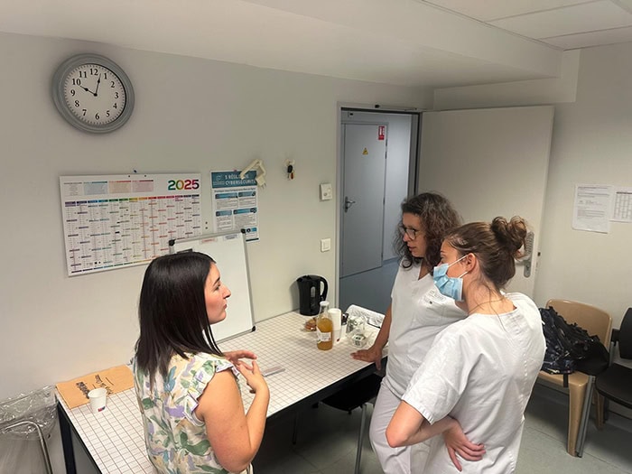 En collaboration avec l’encadrement du service, Amandine Brigaud (référente handicap CHCB), Isabelle Scribans et Jean-Paul Lajus (référents de proximité handicap) sont allés à la rencontre de l’équipe de 9h à 12h.