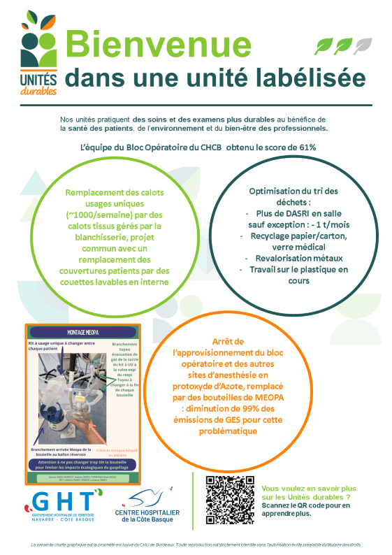Le bloc opératoire : deuxième « Unité Durable » labellisée au Centre Hospitalier de la Côte Basque