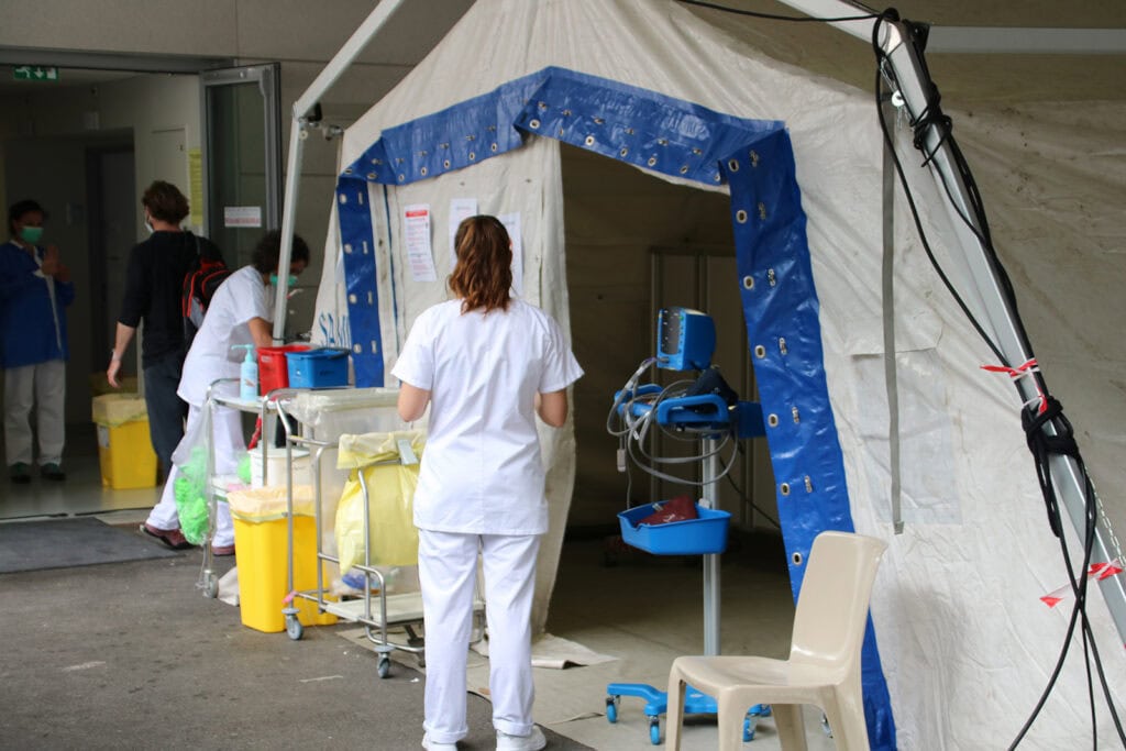 Pour certains patients porteurs de la COVID-19, l’aggravation de leur état de santé a nécessité de les hospitaliser dans le service de réanimation. Au début de la crise, 6 lits sur les 15 que compte le service de réanimation étaient isolés et dédiés aux patients porteurs de la COVID-19.